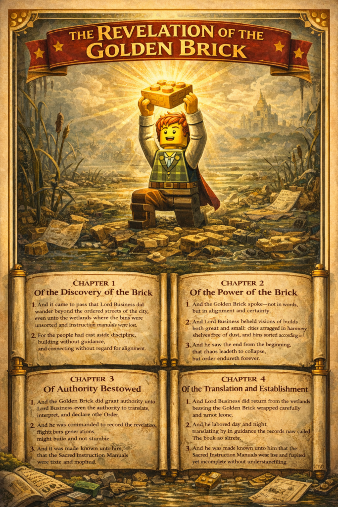 1. And it came to pass that Lord Business did wander beyond the ordered streets of the city,